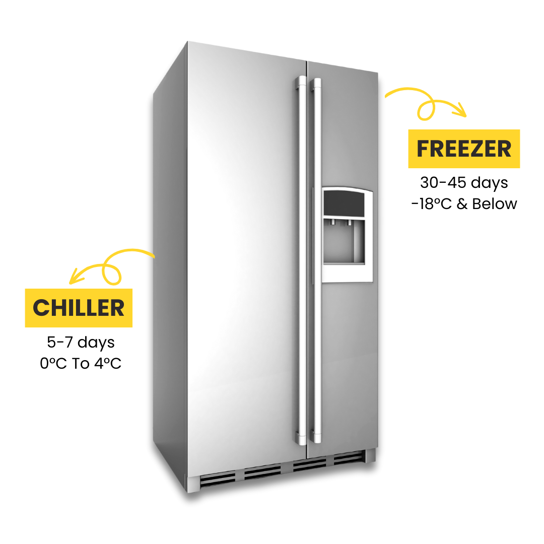 Store in Chiller can last for 5-7 days. It can be stored in the chiller at between 0°C and 4°C.