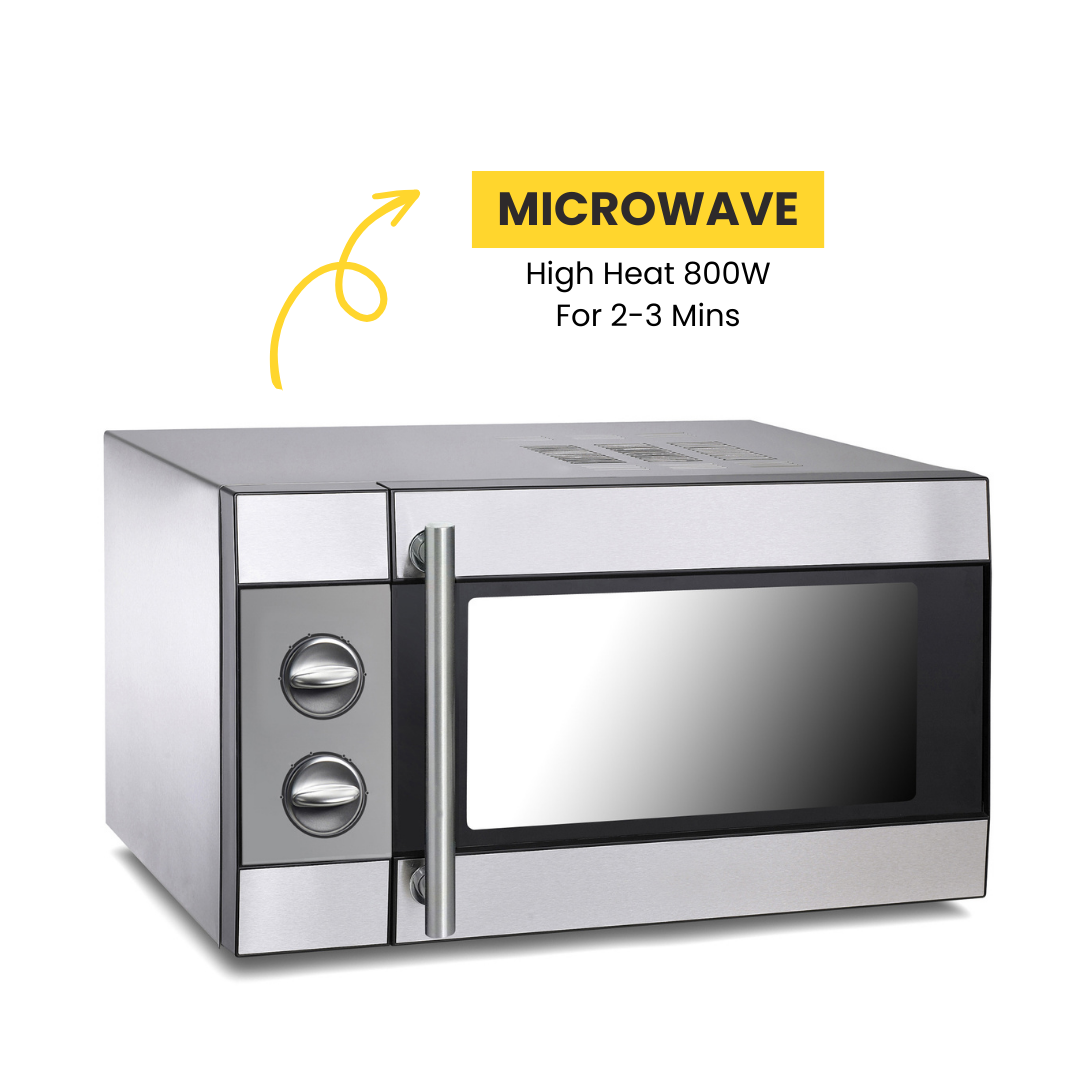 Tear the pouch and remove the food into a microwaveable. Instant reheat (800w) for 2-3 mins.